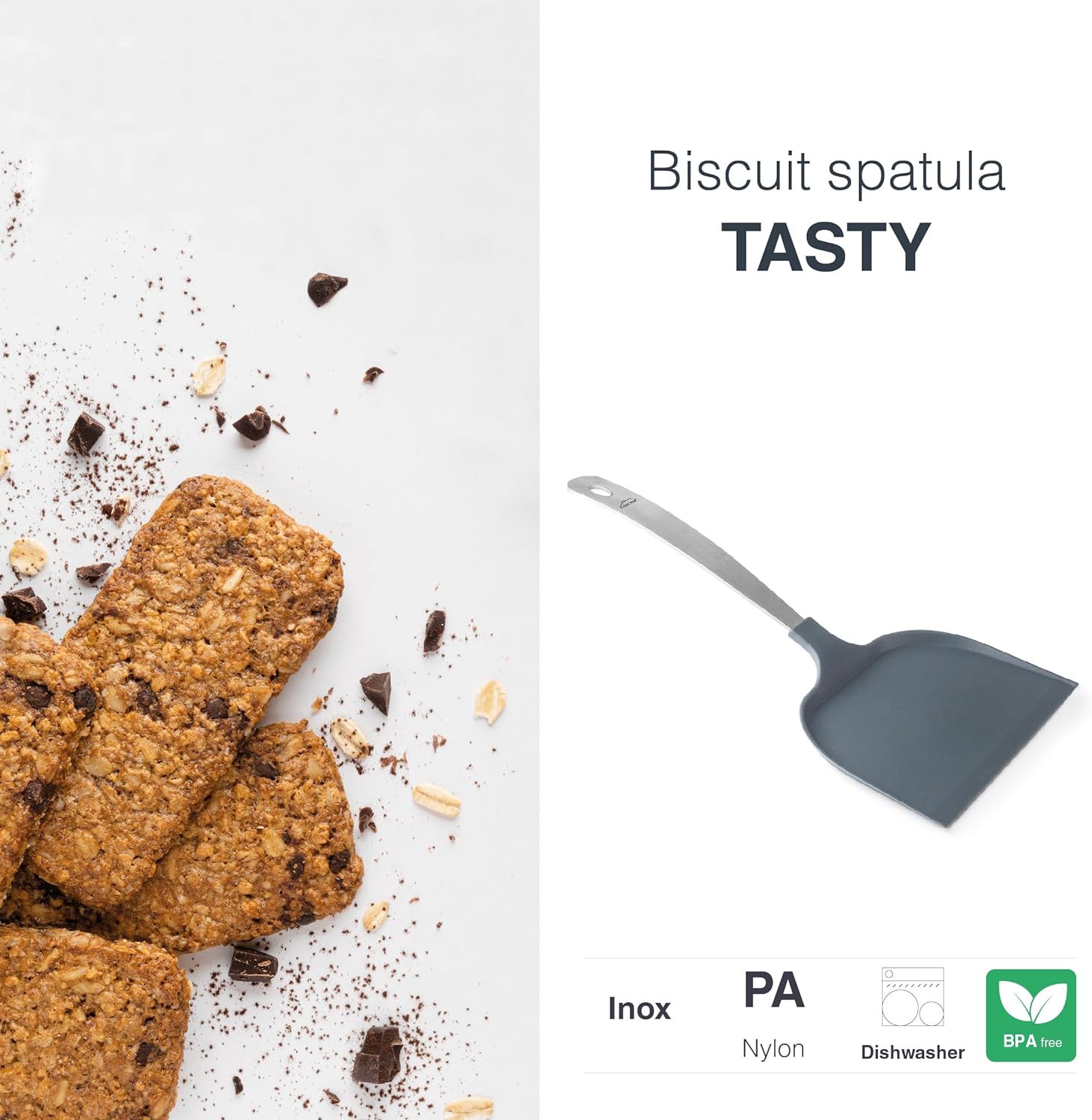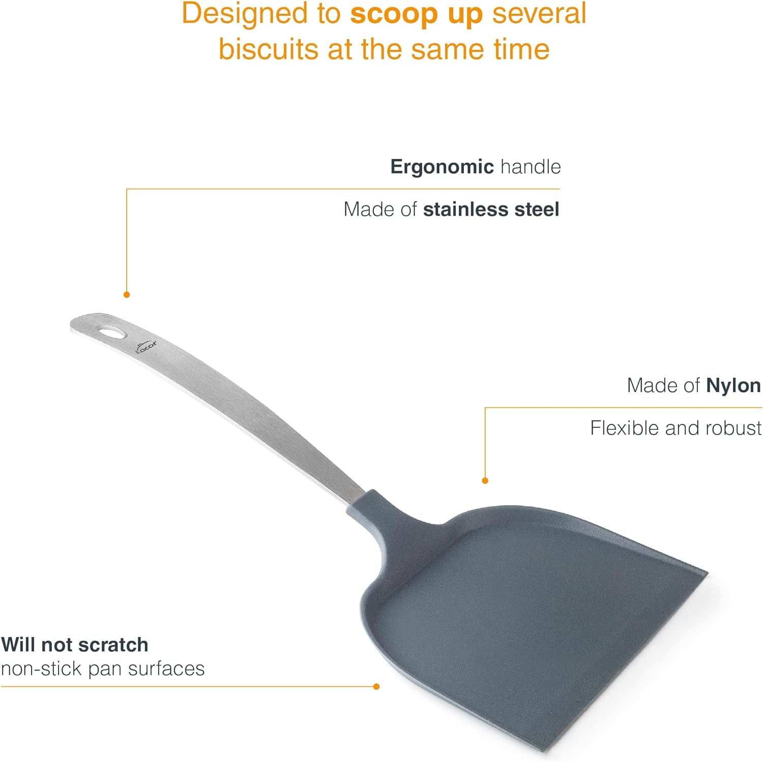 Spatule de Cuisine, Spatule à Pâtisserie, Spatule à Biscuits Savoureux, Manche Ergonomique en Acier Inoxydable, Anti-rayures, Nylon, Sans BPA, Lavable au Lave-vaisselle, 32,5x16,8x11cm
