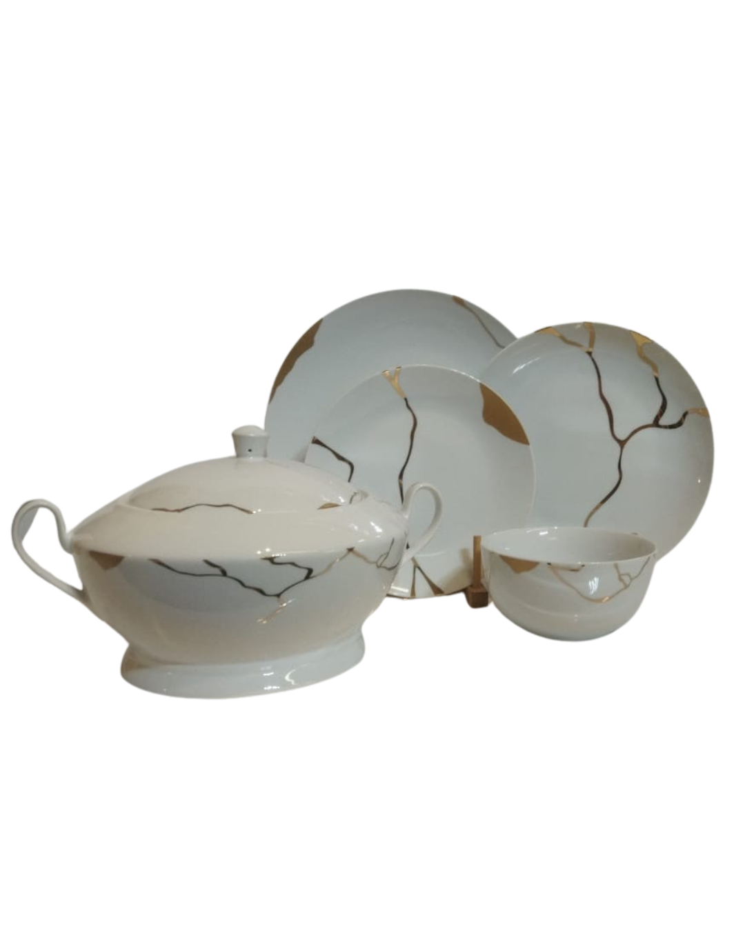 Service de table en Porcelaine compose de 6 assiettes , 6 assiettes moyennes, 6 assiette à désert, 6 bols et une soupière